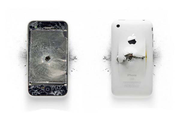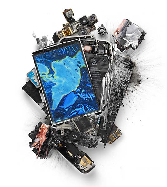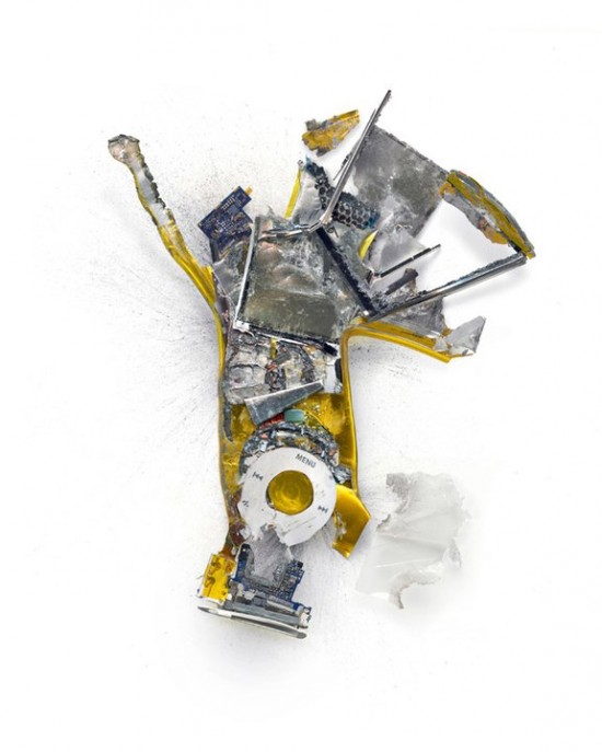 Искусство сегодня принимает весьма странные формы. Американский дизайнер Майкл Томперт (Michael Tompert) пошел на то, чтобы вдребезги разбить, поломать и расстрелять несколько устройств от Apple – iPhone, iPad, iPod и даже MacBook – и позволить фотографу Полу Фэирчайлду (Paul Fairchild) сфотографировать обломки.