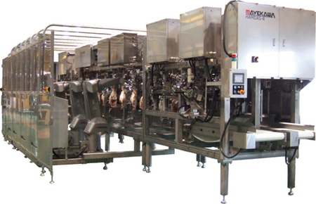 «Выправить» ситуацию уверенно пытается японская компания Mayekawa. Она производит робототехнический комплекс HAMDAS-R для обработки мяса. Робот HAMDAS-R аккуратно захватывает свиной окорок и самостоятельно за считанные минуты отделяет мясо от кости. При этом робот орудует острым ножом как профессиональный мясник. Датчики давления позволяют механическому обвальщику «чувствовать», где кончается «мягкая среда» (то есть мясо) и начинается твердая (кость).
