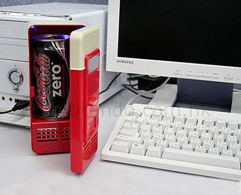Заработавшимся офисным сотрудникам, у которых даже нет времени выйти на обед, этот гаджет будет необычайно полезен. В USB-холодильник запросто помещается жестяная банка, пластиковый стакан или бутылка.