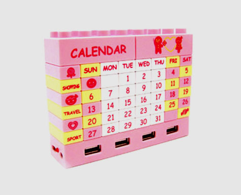 «Календарь Lego» USB хаб, выполненный в виде конструктора LEGO, имеет 4 порта. Отдельные его детали можно переставлять и, таки образом, конструировать календарь на текущий месяц.