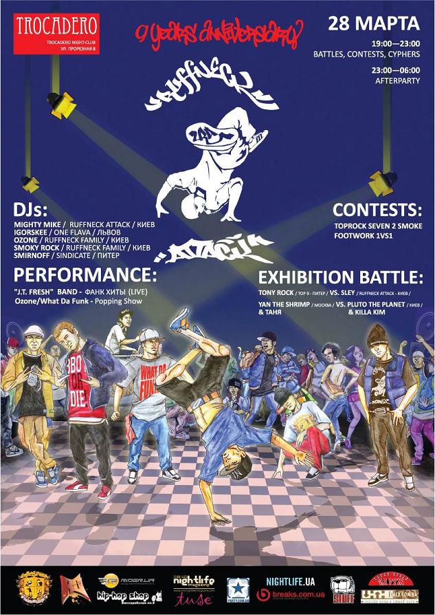 28 марта в столичном клубе "ТРОКАДЕРО" на Прорезной команда RUFFNECK ATTACK отметила свой 9-й день рождения. Было круто (рассказ очевидца).