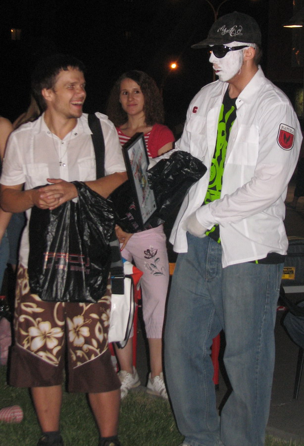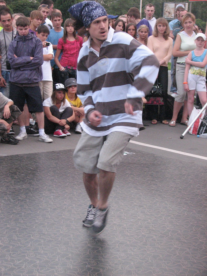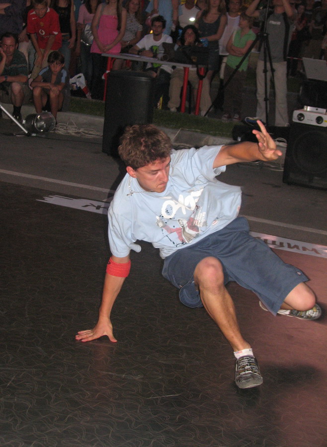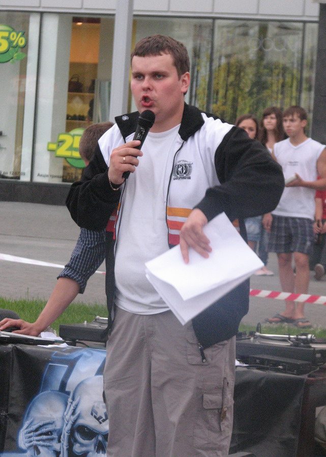 В судейскую бригаду вошли Poppin QS из Черновцов (Popping), Miss Lock (Locking), а также би-бои Nens (Москва), Serg ( H.B.T.C.) и Matt. Ну и само мобой, весь вечер можно было слушать Валеру Бычкова аки МС (см. фото ниже) и DJ Da4nik'а.